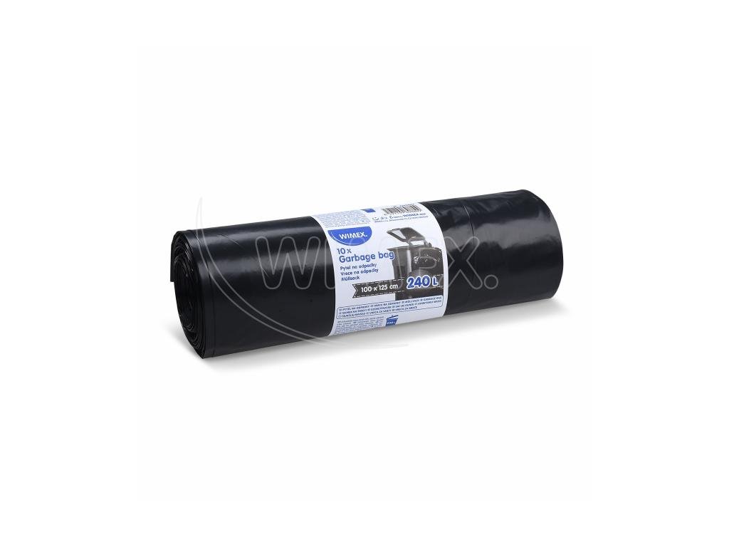 Extra velké černé pytle na odpad z LDPE materiálu o objemu 240 l a rozměru 100 × 125 cm. Pevné, pružné a vhodné pro objemný i těžší odpad. Balení 10 ks.